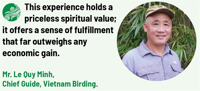 Recording Vietnam’s nature through the friendship of two birdwatchers If outsiders find Richard Craik and Lê Quý Minh’s shared passion for birds intriguing, Minh himself often recalls something even more interesting. Whenever he speaks of his longtime collaborator, he likes to tell the story with a touch of amusement that in the early 1990s, foreigners arriving in Vietnam were often given a Vietnamese name by friends. By coincidence, Richard’s Vietnamese name at the time happened to be… Minh. That year, the two had not yet met. Their first meeting between the two “namesakes” took place a few years later, in 1999, at Bạch Mã National Park. Minh was then working as a guide-receptionist, while Richard was in the travel industry and collaborating with WWF to develop ecotourism maps for national parks. Richard visited Bạch Mã on a survey trip, and that very afternoon, the two went birdwatching together for the first time. From then on, Richard and his wife returned to Bạch Mã regularly, twice a year, staying three to four days each time to follow Minh deep into the forest. The journeys soon extended beyond Bạch Mã to neighboring areas in central Vietnam, then across the country, and even overseas. To this day, the habit remains, though less frequent. “Every now and then, we still ‘sneak away’ from our families, wandering through the mountains and forests for an entire week, following the trail of birds”, Minh said. What has changed most is their work. In 2007, Richard founded Vietnam Birding, while Lê Quý Minh left his position at the national park to become the company’s chief guide.